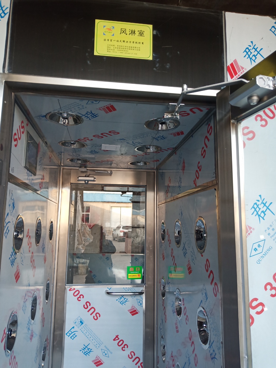 風淋室是一種通用性較強的部分凈化設(shè)備,設(shè)備于潔凈室與非潔凈室之間。當人與貨品要進入潔凈區(qū)時需經(jīng)風淋室吹淋,其吹出的潔凈空氣可去掉人與貨品所帶著的塵土,能有用的阻斷或削減塵源進入潔凈區(qū)。風淋室/貨淋室的前后兩道門為電子互鎖,又可起到氣閘的效果,阻撓未凈化的空氣進入潔凈區(qū)域。