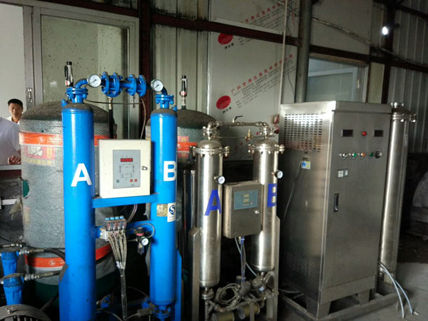 根據(jù)貴單位的實際情況,以及現(xiàn)有的進水管路的工藝,設(shè)計方案中認(rèn)為進水管路可不作大的改動,只是將氣液混合器接入主水管路中,保持氣液混合器進水端有4-5kg的壓力即可,這里只重點介紹臭氧發(fā)生器以及氣路。